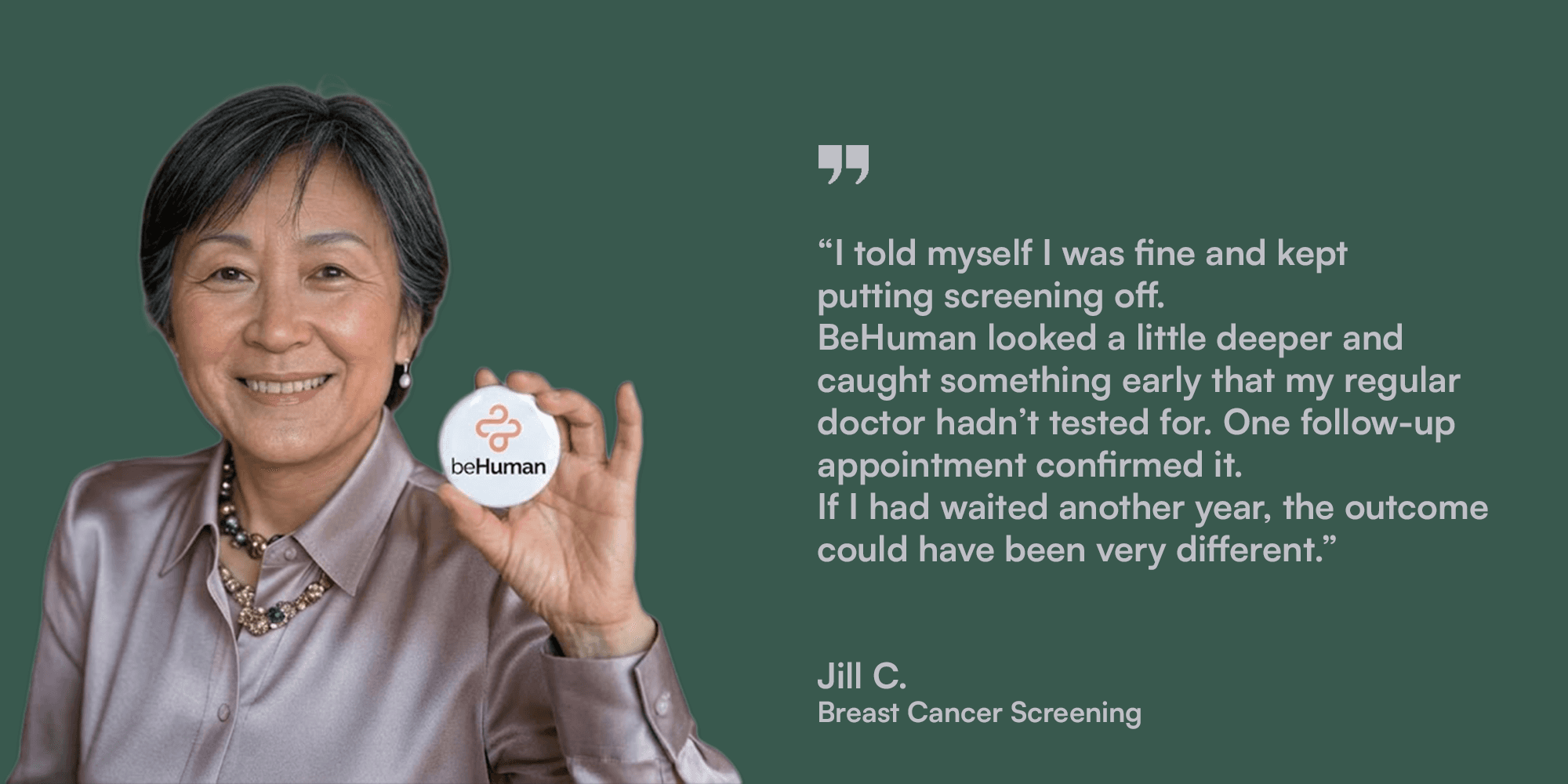 "Early screening found something my regular checkup missed. BeHuman made it easy and affordable."