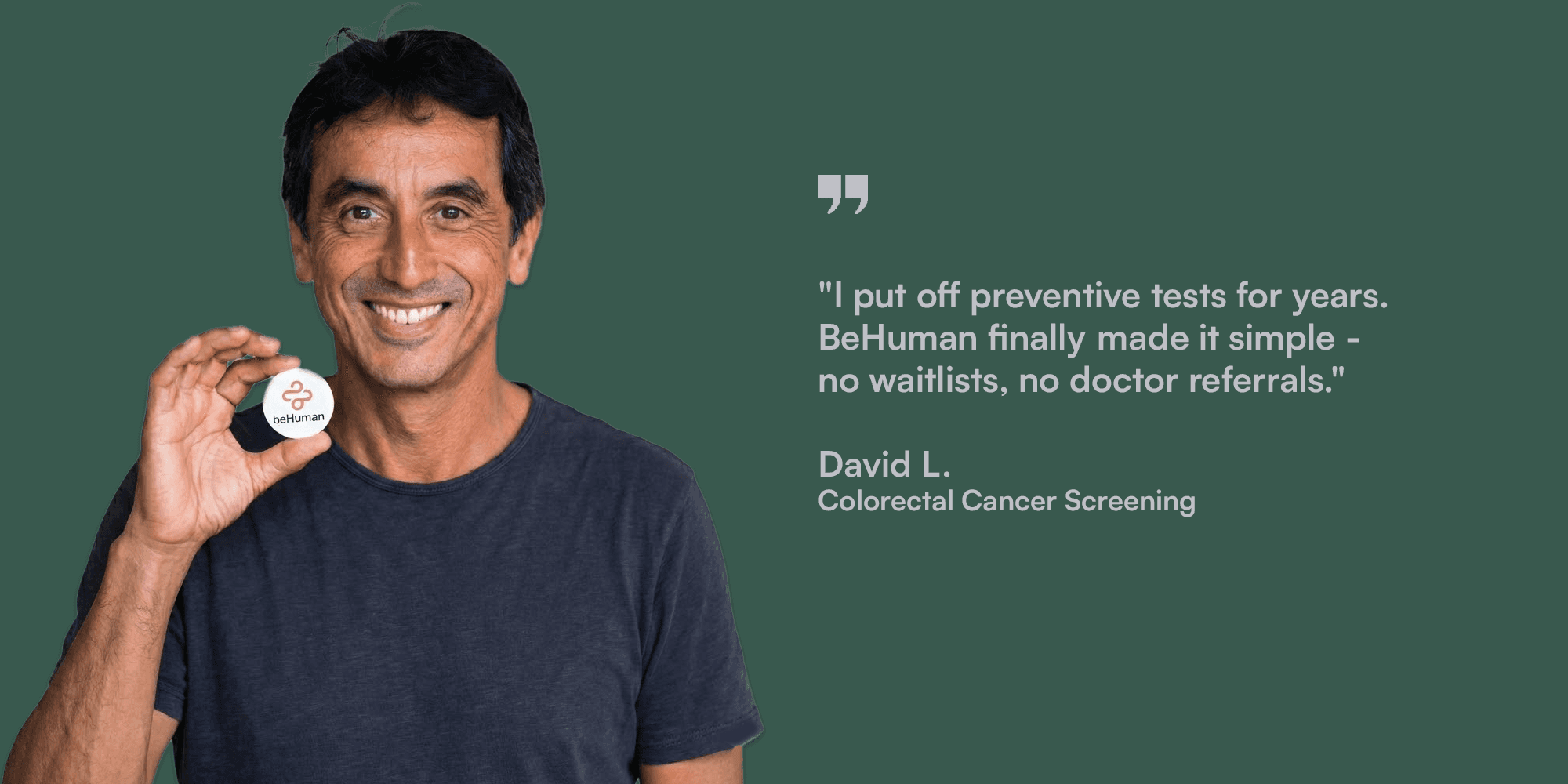 "I put off preventive tests for years. beHuman finally made it simple - no waitlists, no doctor referrals."